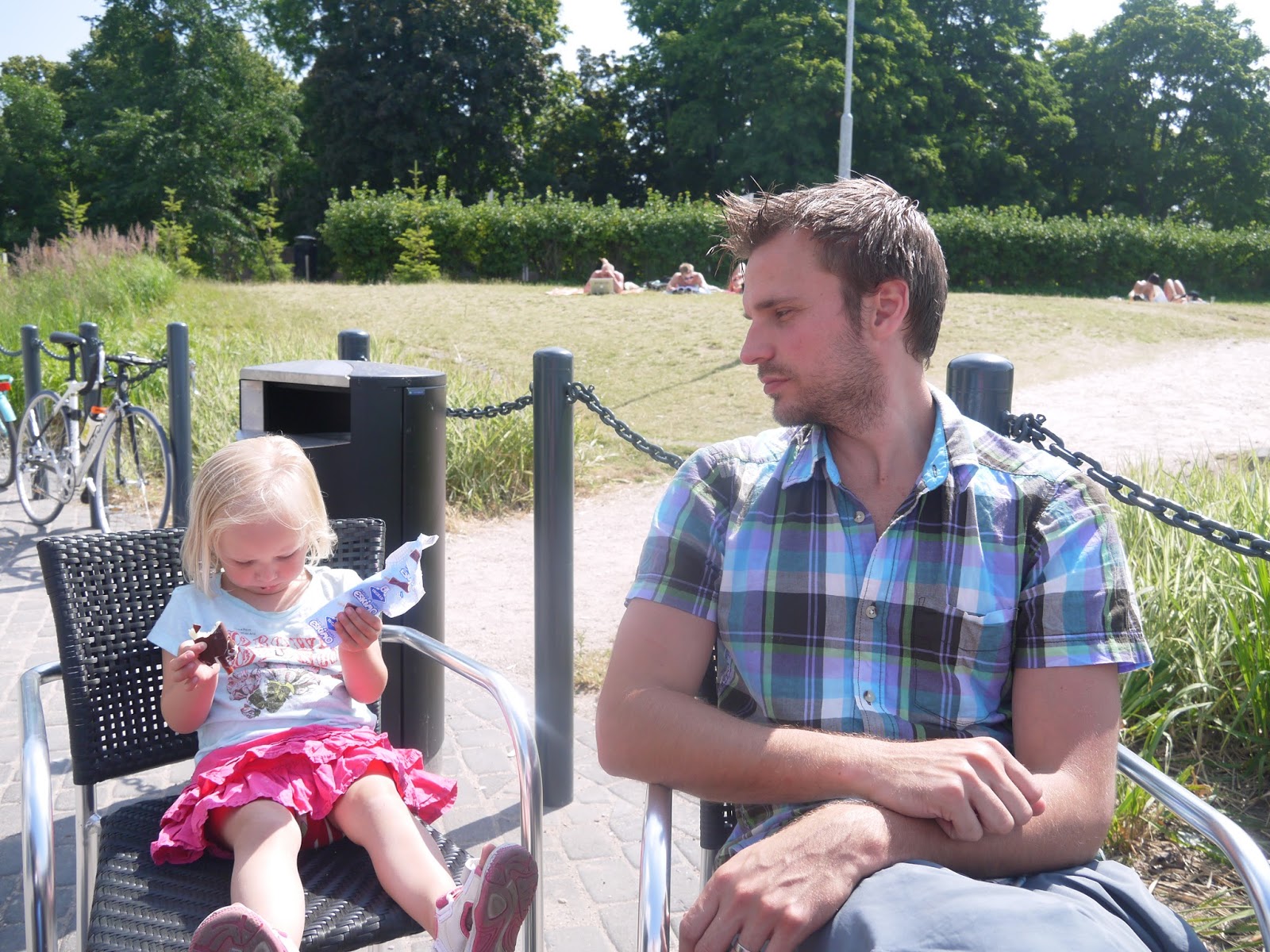 Vi spenderade en kväll på hotell i Lahtis. Gick till parken för att leka och äta glass. Nästa dag badade vi i hotellpolen.